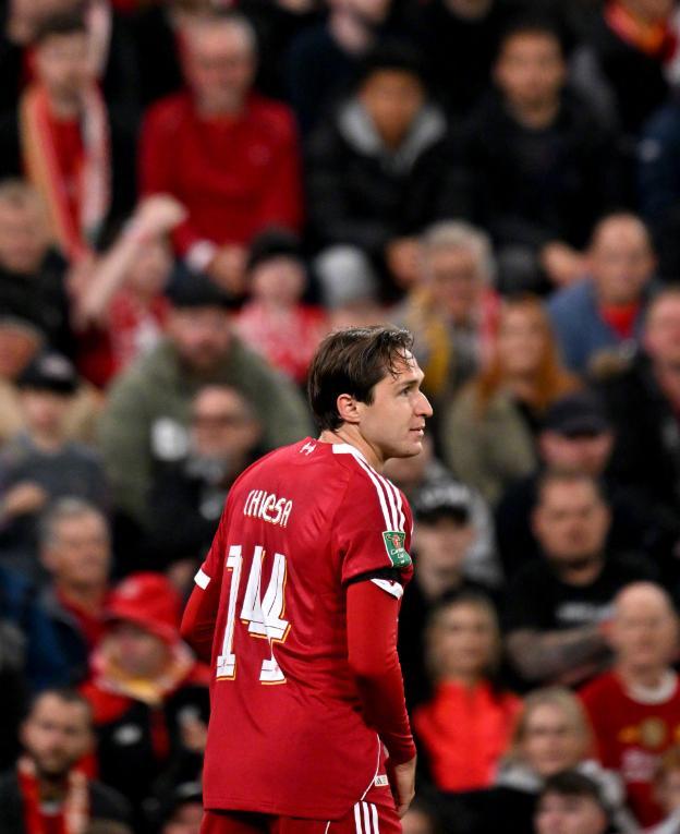 第85分钟,小基耶萨接长传突入禁区横传,埃基蒂克推射空门得手,2-1。尽管埃基蒂克随后因庆祝染红离场,但利物浦守住胜果。